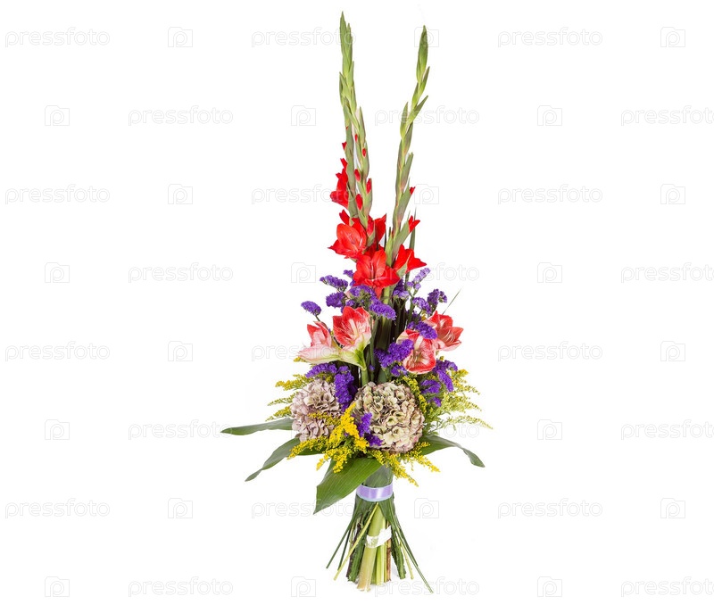 Букет цветов верхний вид на белом фоне