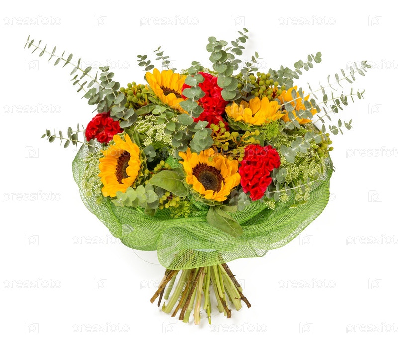 Букет цветов верхний вид на белом фоне