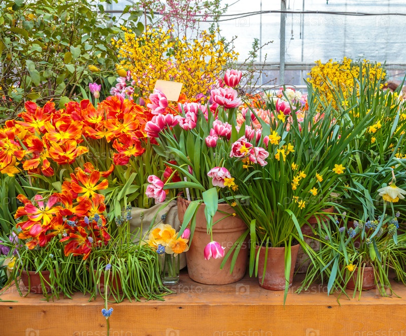 Цветы в зеленой комнате. цветочный букет магазин. цветящие растения и многоцветные цветы внутри садового центра