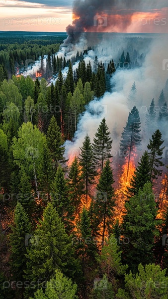 Лесной пожар. пожар в лесу, горят деревья, дым