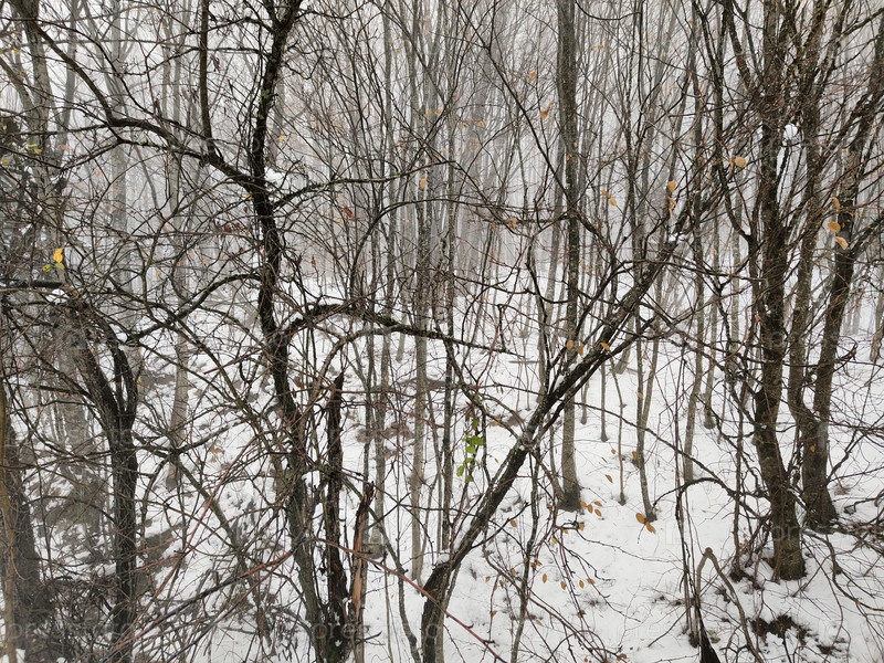 Зимний лес с голыми деревьями и снегом, морозный лесной фон, обои холодного сезона