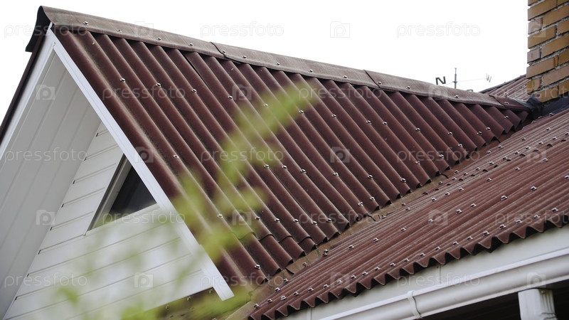 Крыша с гофрированной кровлей. Скриншоты. Детали красной крыши, выполненной и покрытой металлическим профилем. Близкий план кровельного покрова со склонов боковых окон