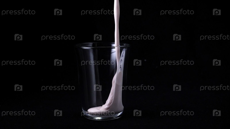 Изолированный клубниковый молочный коктейль на черном фоне В прозрачное стекло наливайте вязкий розовый молочный коктейль на черном фоне Прохладные milkshakes