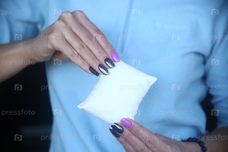 Предмет маленькая подушка в женской руке. Сон и отдых. Концепция здорового сна