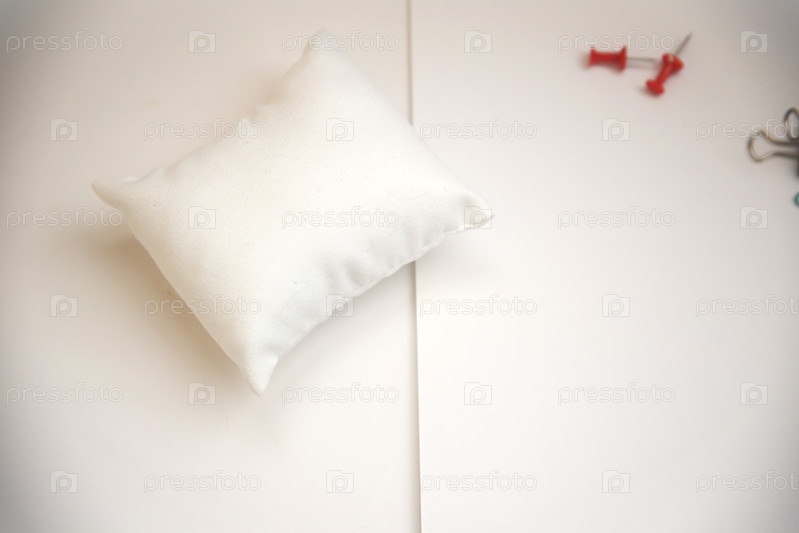 Предмет маленькая белая подушка на столе. Концепция здорового сна