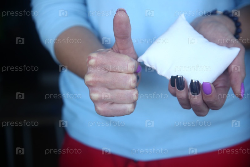 подушка в руке