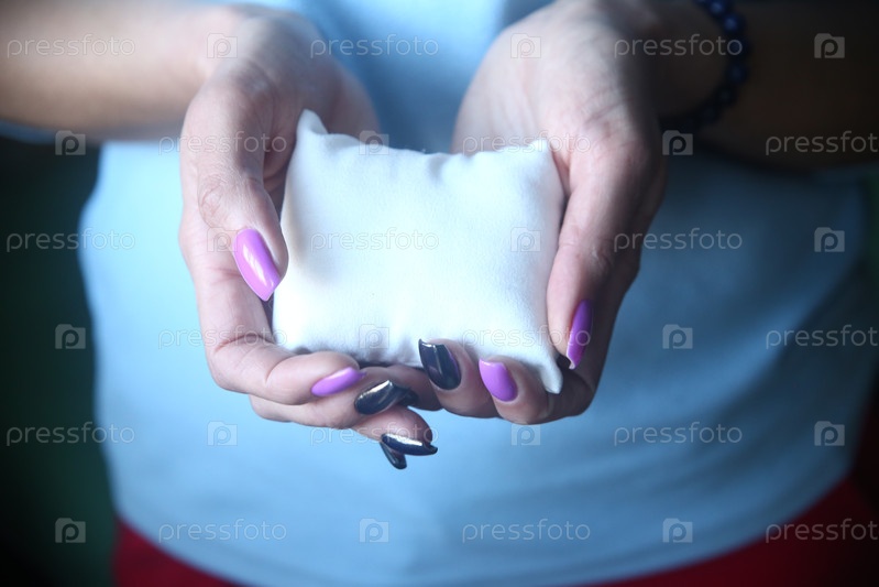 Предмет маленькая подушка в женских руках. Сон и отдых. Концепция здорового сна