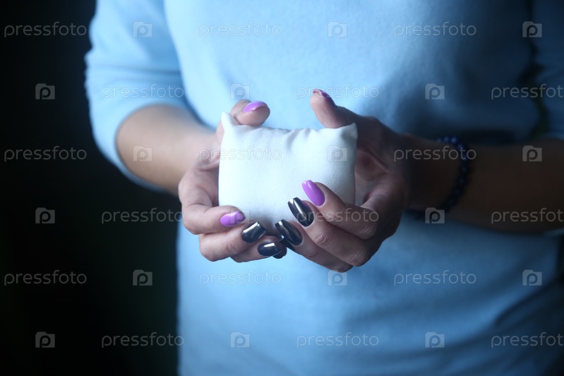 Маленькая подушка в женских руках. Сон и отдых. Концепция здорового сна
