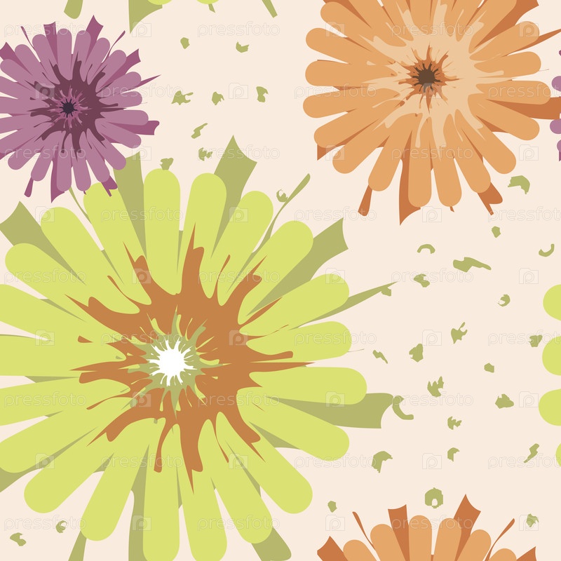 Векторный бесшовный орнамент в детском стиле с цветами