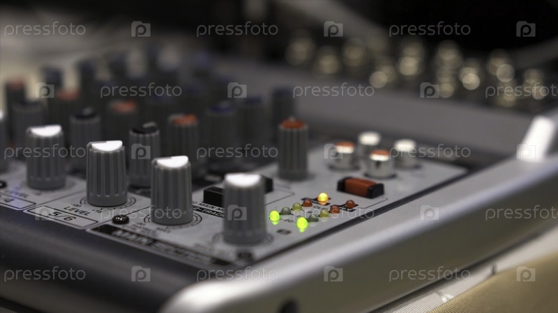 Ближайшее изображение консоль для смешивания. запас. ближайшие многоцветные кнопки консоли звукового миксера, неглубокая глубина поля DOF