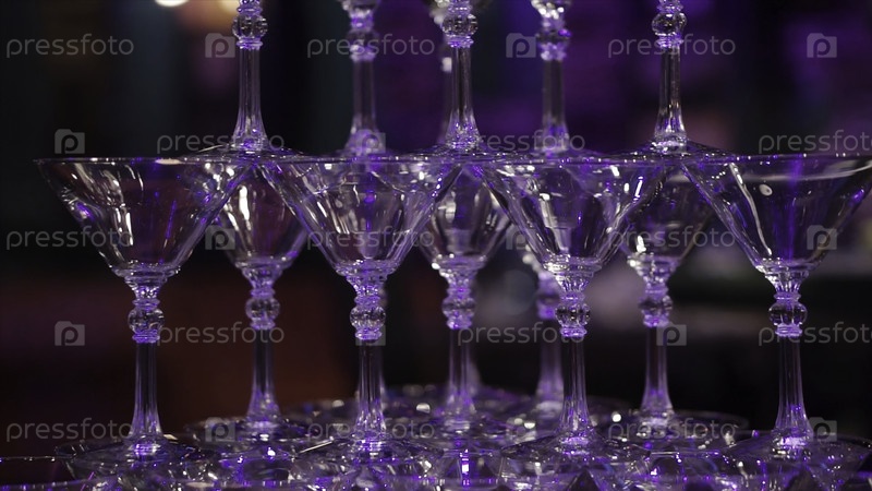 Пирамида бокалов вина, шампанское, башня шампанского