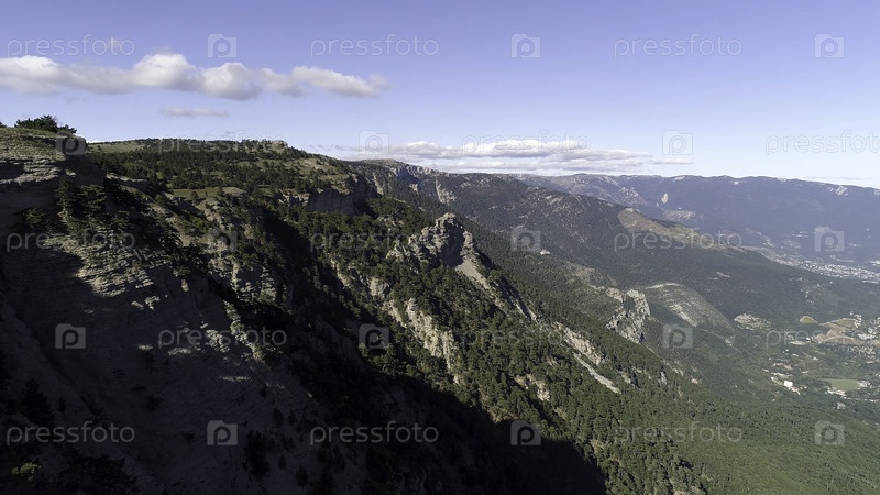 Красивый летний пейзаж, с горными вершинами, покрытыми лесом