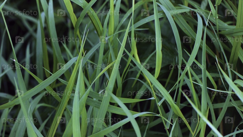 Свежий зеленый травяной фон. Зеленая трава вблизи с капельками росы. Мокрая трава после дождя. Близкие листья