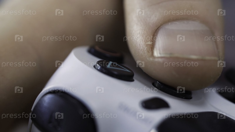 Ближайший снимок мужских рук, держащих контроллер джойстика во время игры в видеоигры дома - Молодой человек развлекается играми - Игровая, развлекательная, технологическая концепция