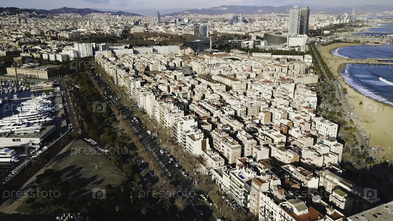 Вид сверху современного города на берегу моря. акции. красивый город на пляже в солнечный день