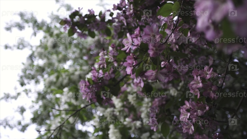 Ближе к красивым цветущим яблоням весной, красоте природы. ярко-розовые и белые цветы цветящих деревьев