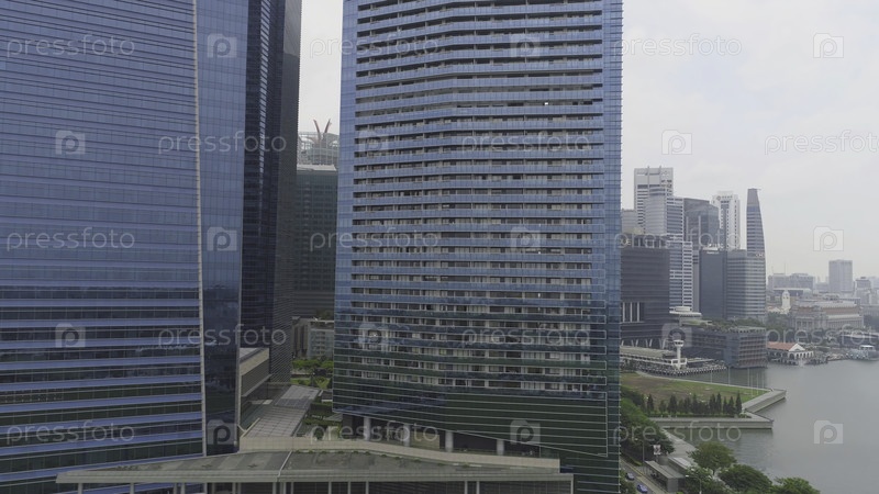 Красочный городской пейзаж Сингапура с крыши. Снимок. Футуристические небоскребы. Вид сверху на финансовый центр Сингапура с небоскребами