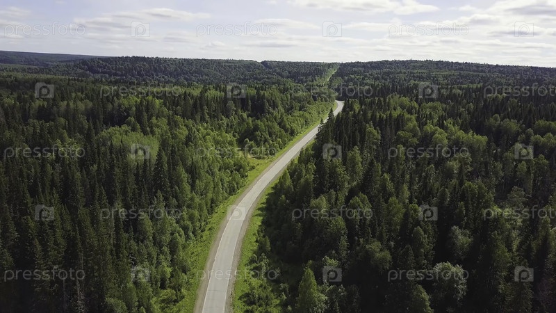 Взгляд с воздуха на белую машину, едущую по сельской дороге в лесу.Взгляд с воздуха над старой заправленной двухполосной лесной дорогой с движущейся машиной зеленых деревьев густого леса, растущих по обе стороны.Вождение автомобиля по лесной дороге