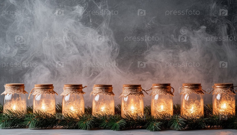 Рождественские фонари в каменных банках и фоне с копировальным пространством