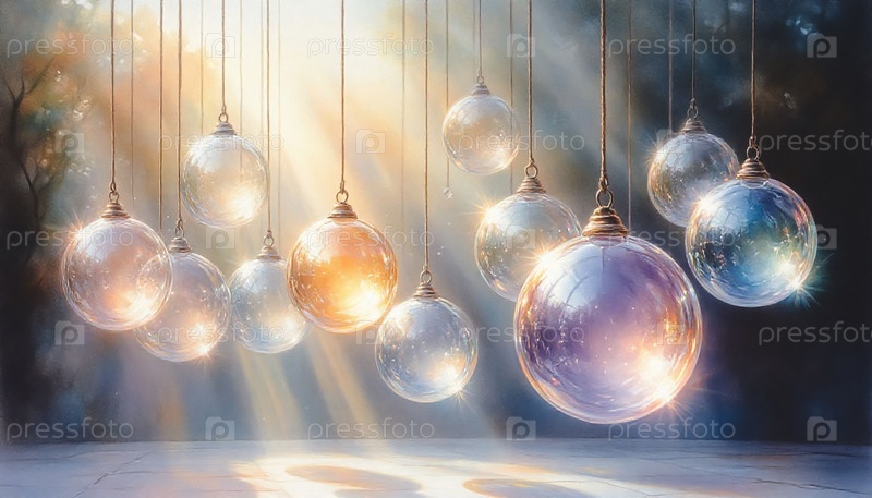 Деликатные стеклянные рождественские шары на струнах