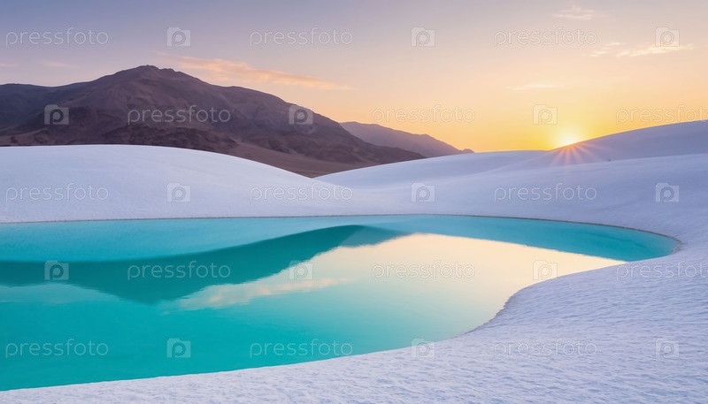 Пастельный пейзаж лазурного соленого озера в пустыне