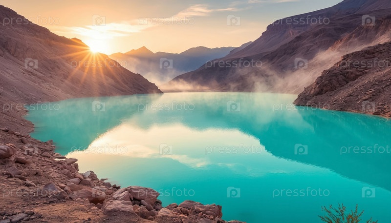 Пастельный пейзаж лазурного озера в пустыне