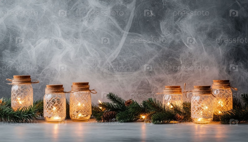 Рождественские фонари в каменных банках и фоне с копировальным пространством