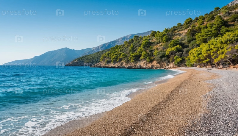 Морской пейзаж - берег, песок и волны, пустынный пляж