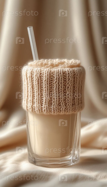 Горячий напиток, завернутый в шарф бежевый фон
