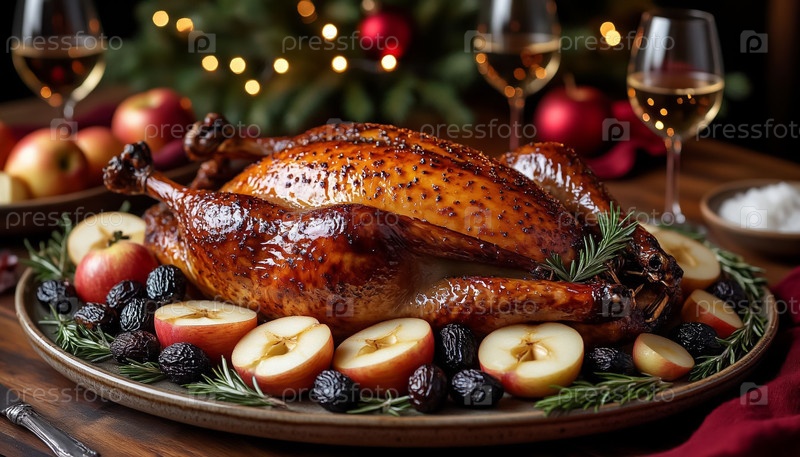 Праздничный жареный гусь на керамической тарелке AI