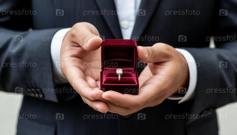 Коробка с ювелирными украшениями в руке мужчины