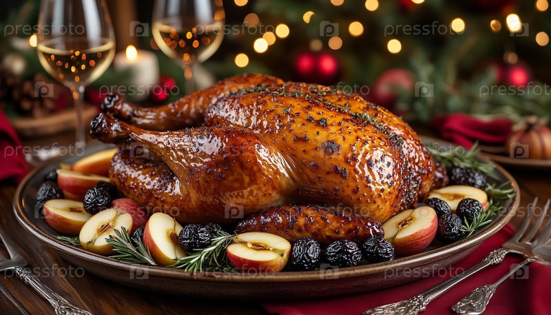 Жареный рождественский гусь с хрустящей кожей и яблоками