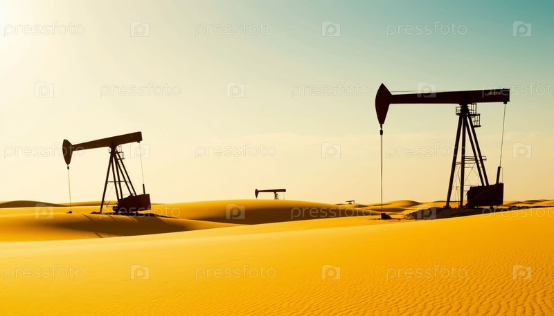 Минималистический пустынный пейзаж с силуэтами нефтяных насосов