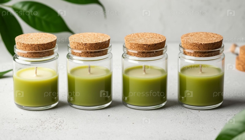 Естественные зеленые свечи в банках с крышками