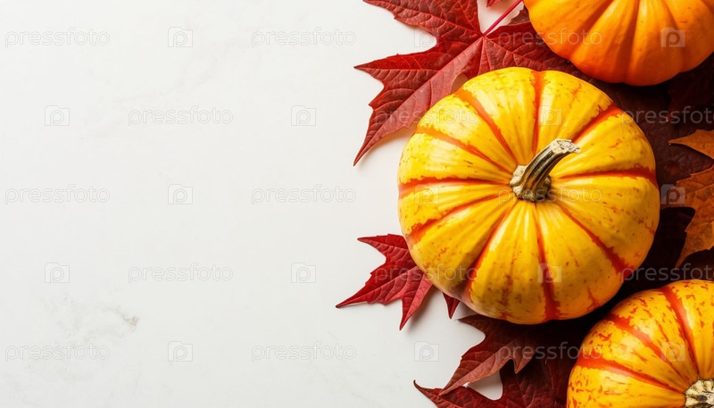 Желтая тыква на белом фоне верхний вид и пространство для копирования
