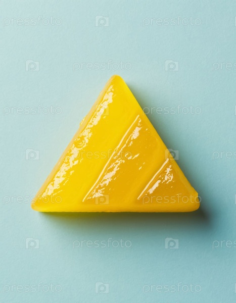 Абстрактный светящийся желтый треугольник мармелад на сером фоне
