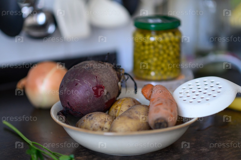 Подготовка овощей для салата винегрет