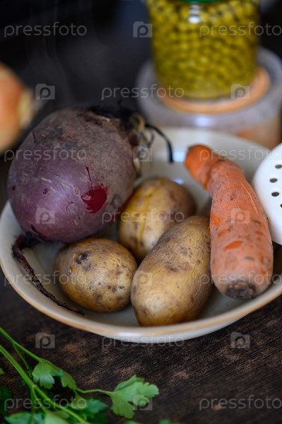 Отварные овощи для салата винегрет