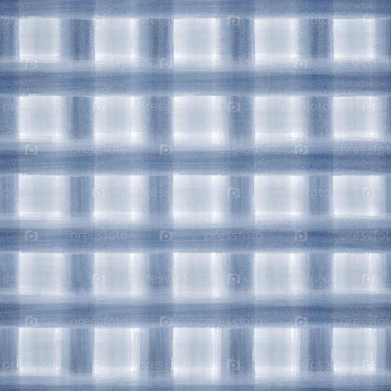 Бесшовный квадратный рисунок в синих и серых цветах. Акварельная иллюстрация геометрического орнамента на изолированном фоне. Карточный фон для скатертей, текстиля, обоев и печати