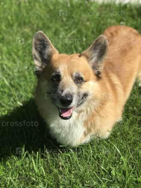 Счастливый рыжеволосый корги на летней прогулке