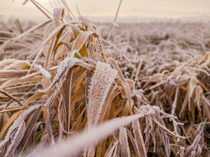 Близкий взгляд на замороженную сушеную траву с кристаллами льда, покрывающими лезвия.Зимняя натуральная текстура фона для сезонных элементов дизайна
