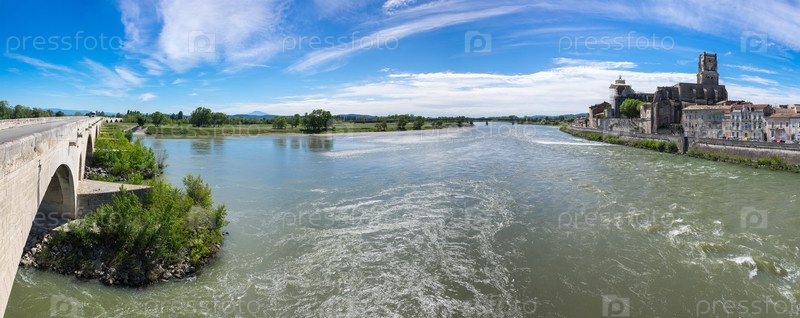 Церковь Святого Сатурна и средневековый мост через реку Рона