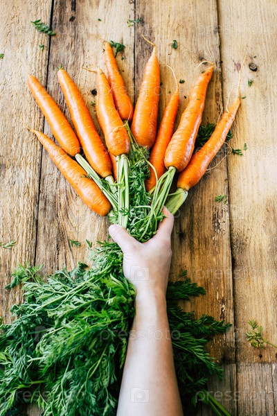 Свежая, молодая морковь с ботвой