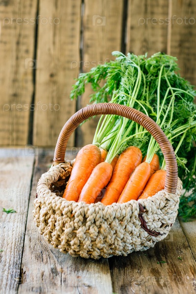Свежая, молодая морковь с ботвой