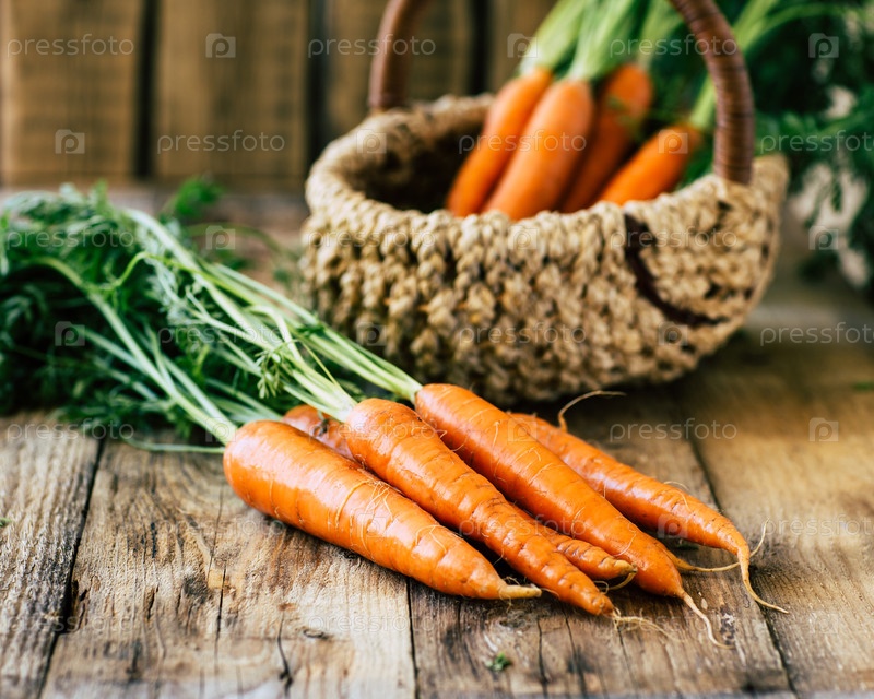 Свежая, молодая морковь с ботвой