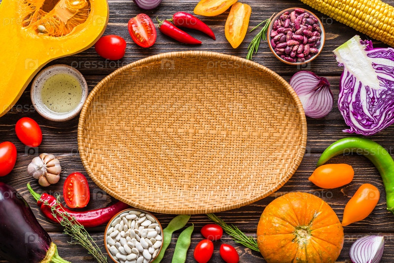 Фон с рамкой из свежих овощей