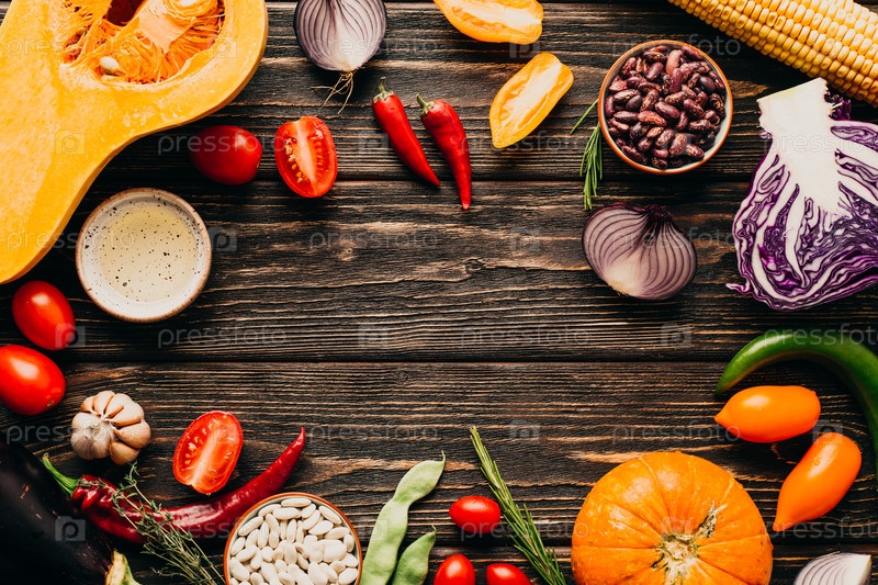 Фон с рамкой из свежих овощей