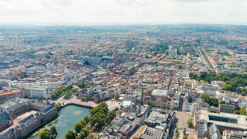 Гаага, Нидерланды. Центр Гааги - исторический центр города. Облачная погода. Летний день, Aerial View