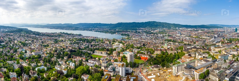 Цюрих, Швейцария Панорама города в пасмурную погоду Летний день Вид с воздуха