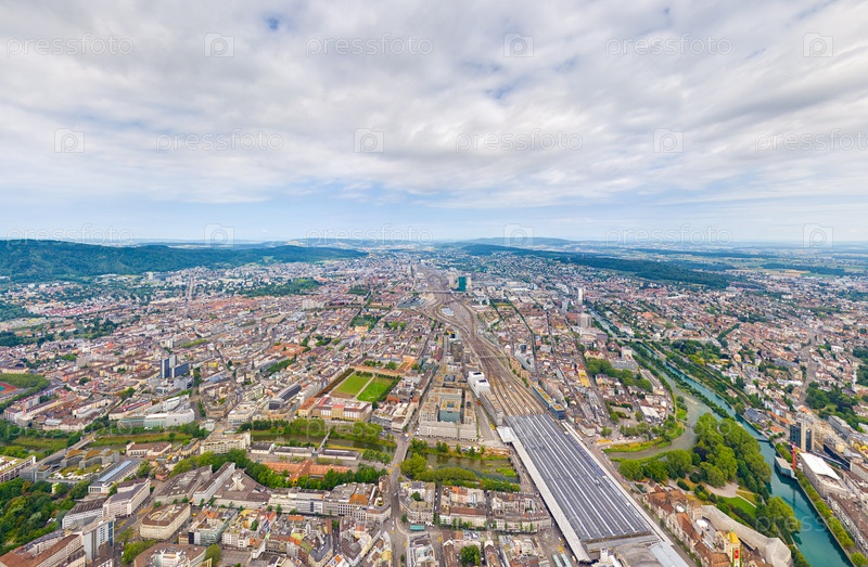 Цюрих, Швейцария Панорама города в пасмурную погоду Летний день Вид с воздуха